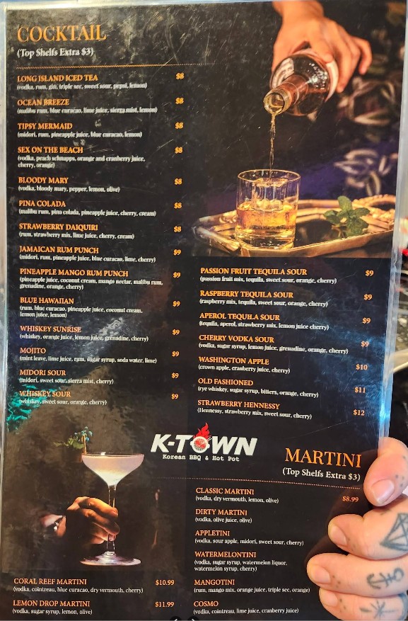 At K-Town Korean BBQ Restaurant, we bring the bold and rich flavors of Korean BBQ right to your table. With an extensive menu featuring savory BBQ meats, fresh hot pots, and traditional Korean side dishes, every meal promises a unique dining experience. Whether you're here for a casual meal with friends or a special family gathering, our expertly crafted dishes will surely delight your taste buds. Explore our K-Town Korean BBQ Restaurant menu and enjoy the true taste of Korea!